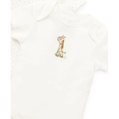 Estos body's de género neutro son esenciales para el primerguardarropa del bebé. Están confeccionados en algodón suave, son duraderos ysuaves para la piel del bebé. El paquete múltiple incluye un aplique de jirafay estampados combinados.