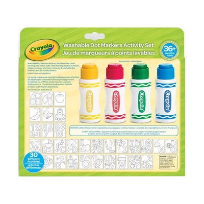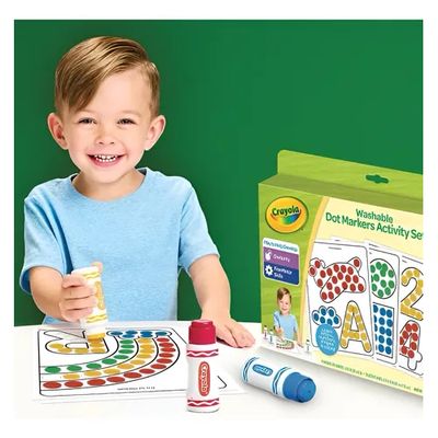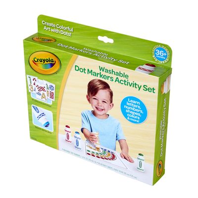 El set de actividades de marcadores de puntos lavables Crayola permite a los niños crear y aprender mientras mejoran su motricidad fina. La sencilla práctica de dibujar puntos de colores en atractivas páginas de actividades ayuda a los pequeños artistas a reconocer letras, números, formas y más. Los niños desarrollan naturalmente su motricidad fina mientras crean y aprenden con las actividades incluidas, usando marcadores de puntos de colores para practicar letras, números, colores y formas. Estos marcadores lavables Crayola se limpian fácilmente de la piel, la ropa y la mayoría de las paredes pintadas. El set incluye 4 marcadores de puntos lavables (2.5 oz c/u) y 30 divertidas páginas de actividades. Seguros y no tóxicos, un regalo ideal para niños y niñas.