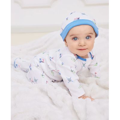 Prepárate para jugar con tu pequeño con este gorro y pijama para bebé recién nacido. Esta adorable pijama está decorado con todo golf. El conjunto es 100% algodón y se ajusta desde el escote hasta los pies para facilitar el vestir. Las mangas largas son perfectas para mayor comodidad.