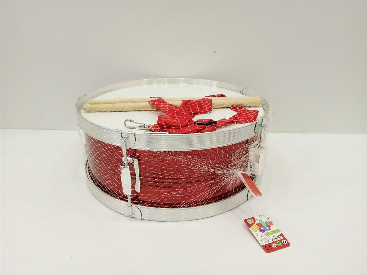 El juguete incluye: - un tambor con cuerpo de metal, - aros de aluminio, - una membrana de plástico, - un mango textil, - dos palos de madera - Dimensiones del tambor - 23 cm x 11 cm x 23 cm.