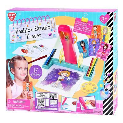 Playgo Fashion Studio Tracer permite a las niñas incursionar en el diseño de moda. Con un conjunto de 4 discos de calco, 32 imágenes y una serie de opciones de moda, hay tantas posibilidades. Usa el proyector para crear tu obra maestra y luego agrega un toque de color con los 6 marcadores incluidos.
