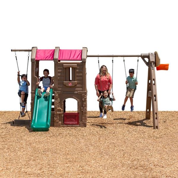 Completo con una casa club de dos pisos, este juego de columpios para niños tiene tantas características interesantes para mantenerlos entretenidos, y al aire libre, con juegos activos durante horas.