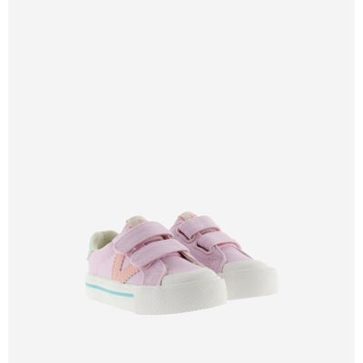 Zapatos deportivos para niños con laV de victoria en el lateral en contraste con la trasera. Etiqueta en lalengüeta con dibujo impreso de un helado. Cierre mediante dos tiras adherentespara una mejor sujeción y facilitar el calce. Refuerzo de goma en la punteraque las hace más resistentes y duraderas. Plantilla con estampado vichy de altadensidad para un mayor confort. Estas zapatillas no son solo un calzado, son el compañeroideal para que tus hijos salten, corran y exploren con total seguridad y elmejor estilo. ¡Haz que cada día sea una nueva aventura!