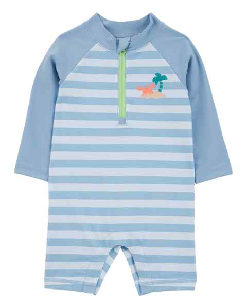 Esta traje de baño cuenta con protección solar UPF 50+ y está diseñada con un tejido de secado rápido para mantenerlo fresco toda la temporada. Además, con un estampado de rayas azul y un diseño fácil de poner, esta traje de baño es duradero y muy adorable.