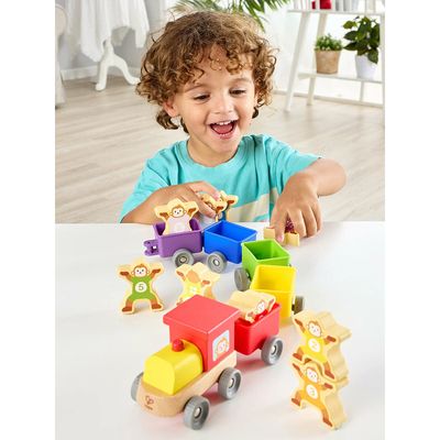 Con 10 simpáticos monitos a bordo de un tren, ¿podrás emparejar sus colores con el vagón correcto o apilarlos? Con colores vivos y formas robustas, este juguete es perfecto para que los más pequeños desarrollen el reconocimiento de colores y las habilidades numéricas. Este colorido juego de apilar está diseñado para inspirar la imaginación, desarrollar el reconocimiento de colores y las habilidades motoras finas y numéricas.