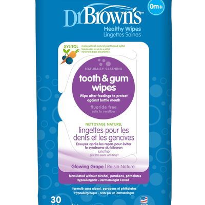 Establezca una rutina de cuidado dental saludable limpiando fácil y rápidamente las encías y los dientes del bebé después de comer.