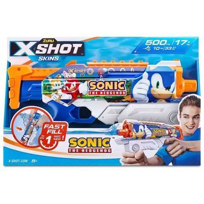 ¡Renueva tu lanzador con la velocidad supersónica de Sonic the Hedgehog! X-Shot Fast-Fill Hyperload te permite recargar tu lanzador en solo 1 segundo y volver a la acción del lanzador de agua mucho antes que tus oponentes. Simplemente sumerge, llena y cierra con la tecnología de sellado rápido. ¡Dispara hasta 33 pies/10 metros con su tanque de agua con capacidad de 500 ml/17 Fl OZ.!